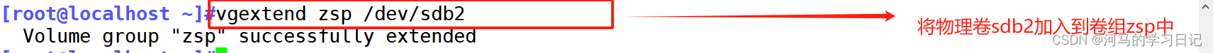 创建好物理卷后,我们将其加入到卷组中去: