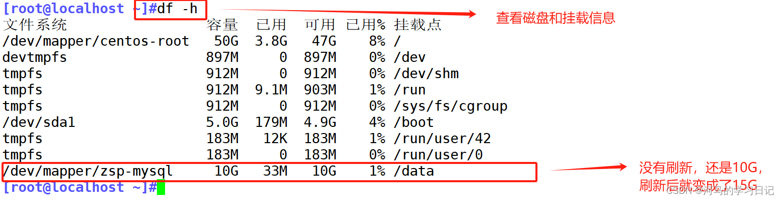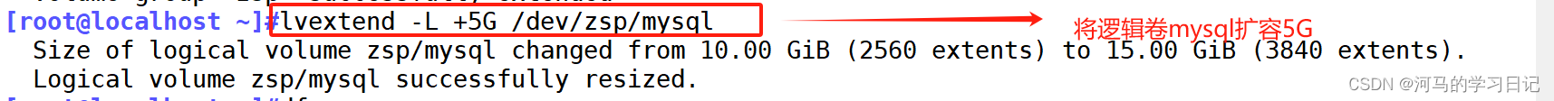 然后我们将逻辑卷扩容: