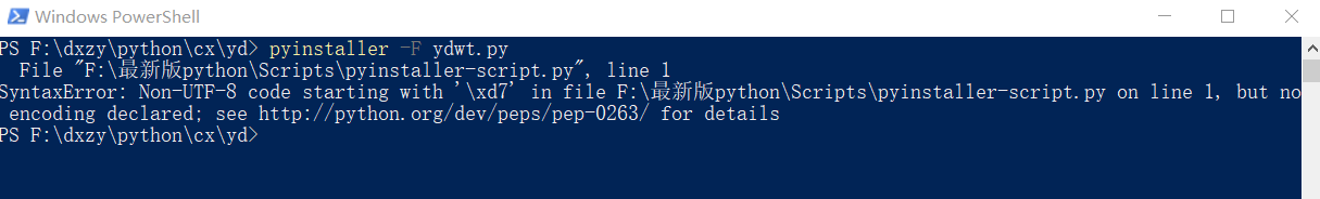 问题:如果出现以下的错误(见图3),表示你写的程序编码存在问题,原因我个人猜测可能是windows自身是GBK编码,而打包需要UTF-8编码的原因。