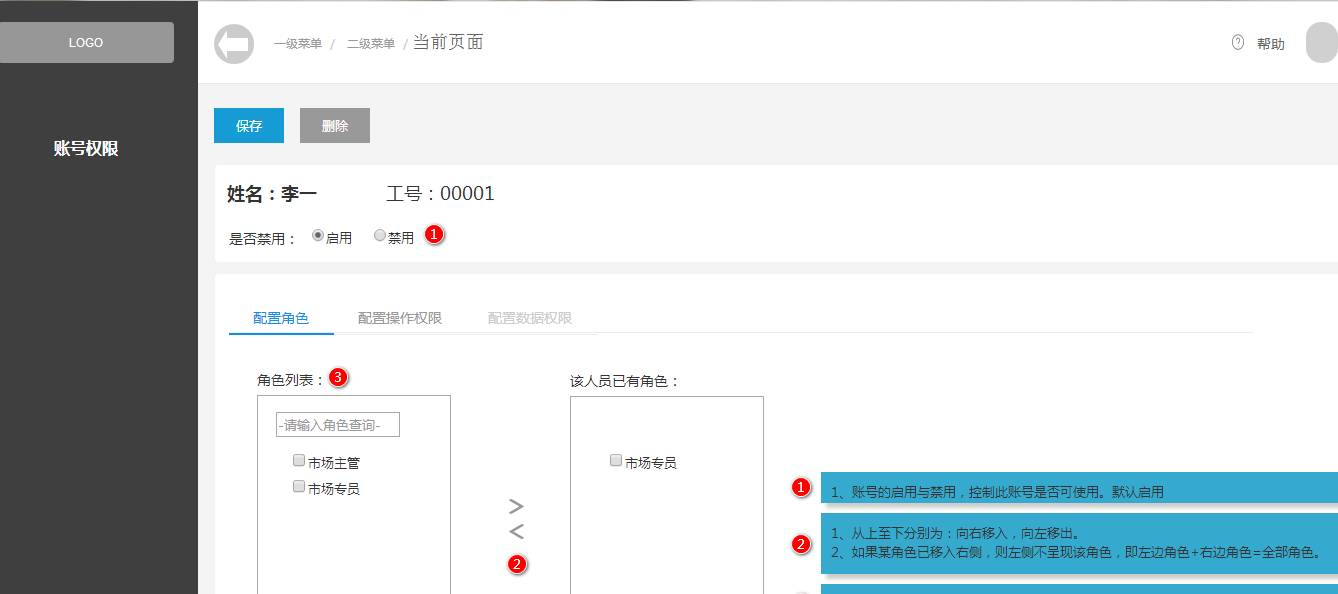 这里需要注意的是账号的禁用,用于防止员工离职后的问题。可以跟人事系统打通,人事那边设置某员工离职后,所有系统账号自动设为禁用。