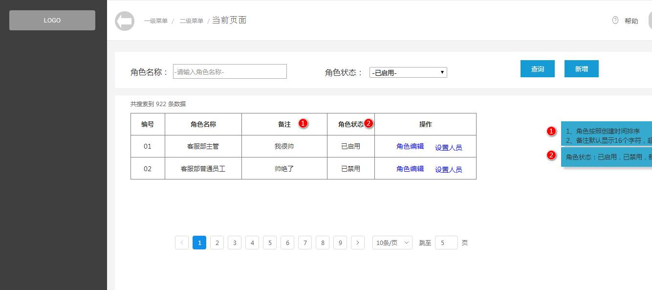1. 角色列表页