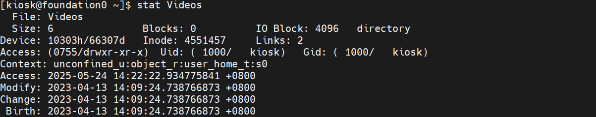 该文件的创建或内容修改时间(ctime)