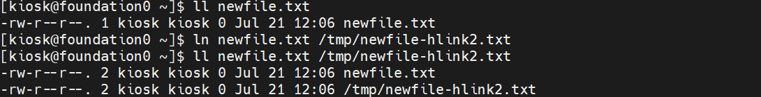 ln newfile.txt /tmp/newfile-hlink2.txt