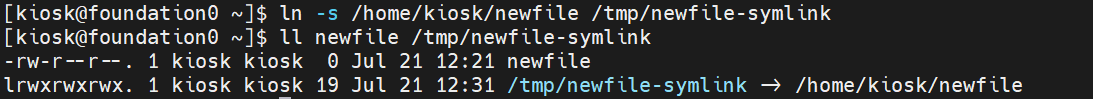 ln -s /home/kiosk/newfile /tmp/newfile-symlink