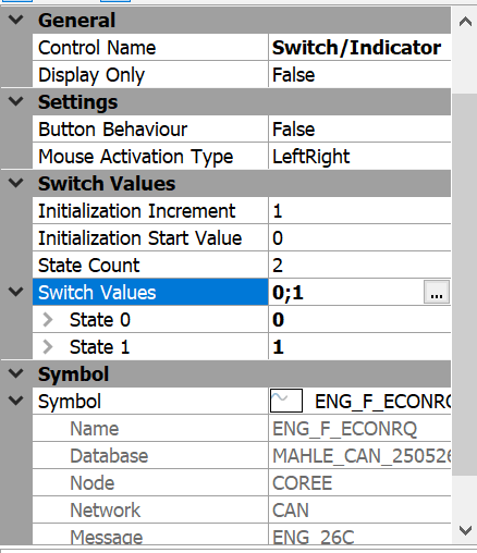 Switch控件模拟物理开关,具有两种或多种状态(如ON/OFF)。通过绑定系统变量或环境变量,状态变化时会自动更新关联变量值。