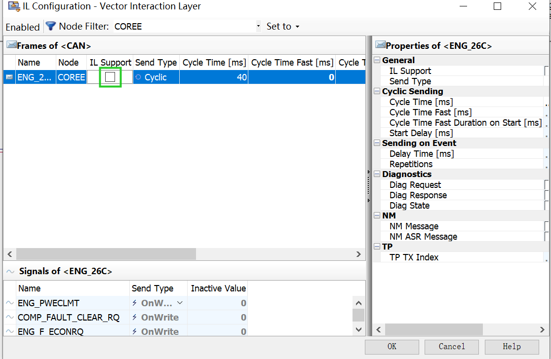 ① 右键CAPL所在节点,点击IL 配置选项,进入后把你要关闭自动发送的报文取消勾选,如下图所示: