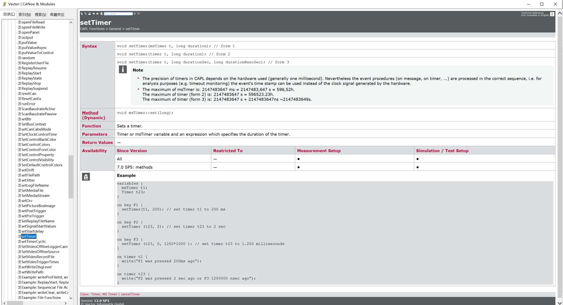 以这个setTimer为例,下面有CANoe官网给的简单示例,告知这个函数的简单用法。