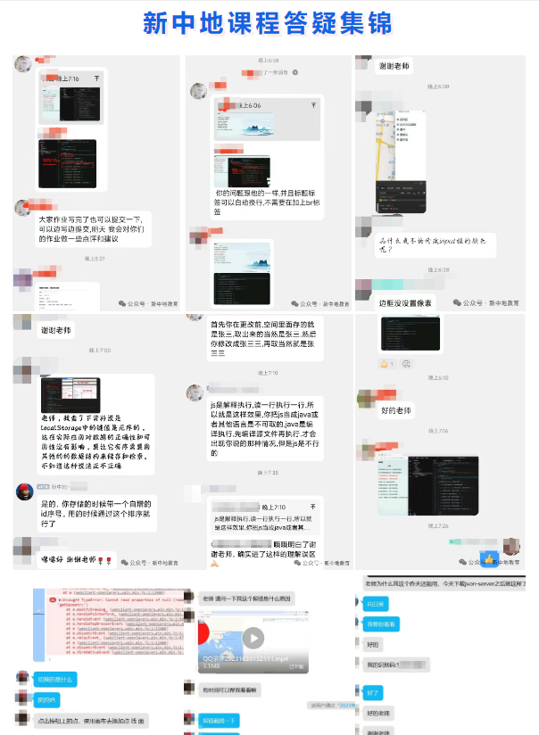 在新中地,同学们能从0基础的小白,逐步成长为胜任企业岗位的三维GIS开发工程师讲师,这其中离不开老师们的悉心教导和贴心答疑。每个阶段,老师们都会细心回答同学的疑问,帮助大家排除学习中障碍。