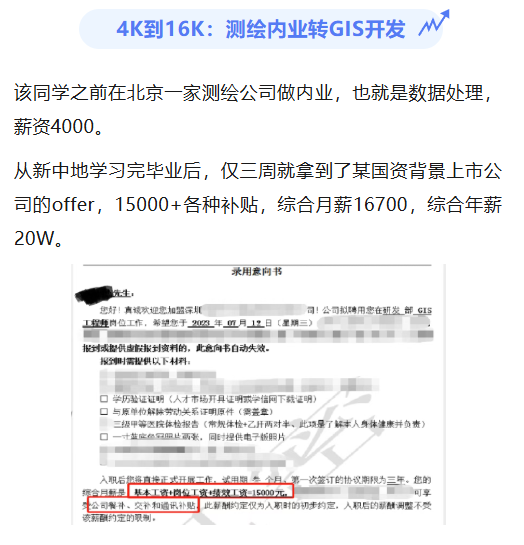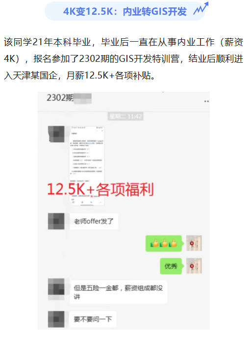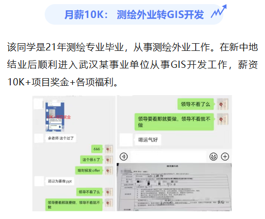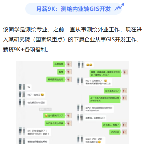 新中地每年有大量测绘转GIS开发的同学来学习,也有大量的转行成功案例: