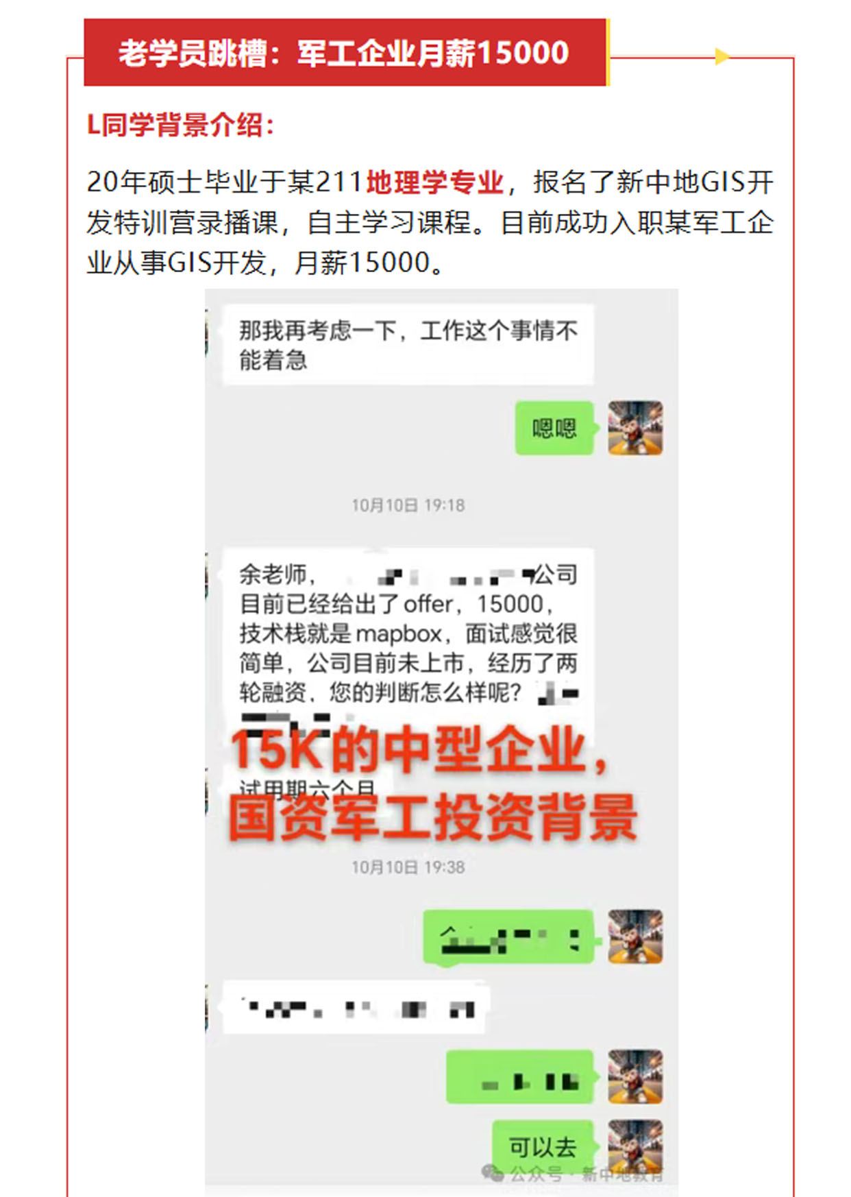 今天我们来总结一下9-10月新中地GIS开发特训营就业的学员情况,通过介绍同学们的学历、专业、就业薪资、就业地点等信息,为考虑转行学习webgis开发作为职业路径的同学们一些实质性的案例参考。