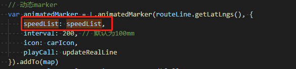 解释:示例中小车的默认速度是 100米/100毫秒,也就是options参数中的distance/interval,添加speedList参数后的速度也就是默认速度*speedList[i]