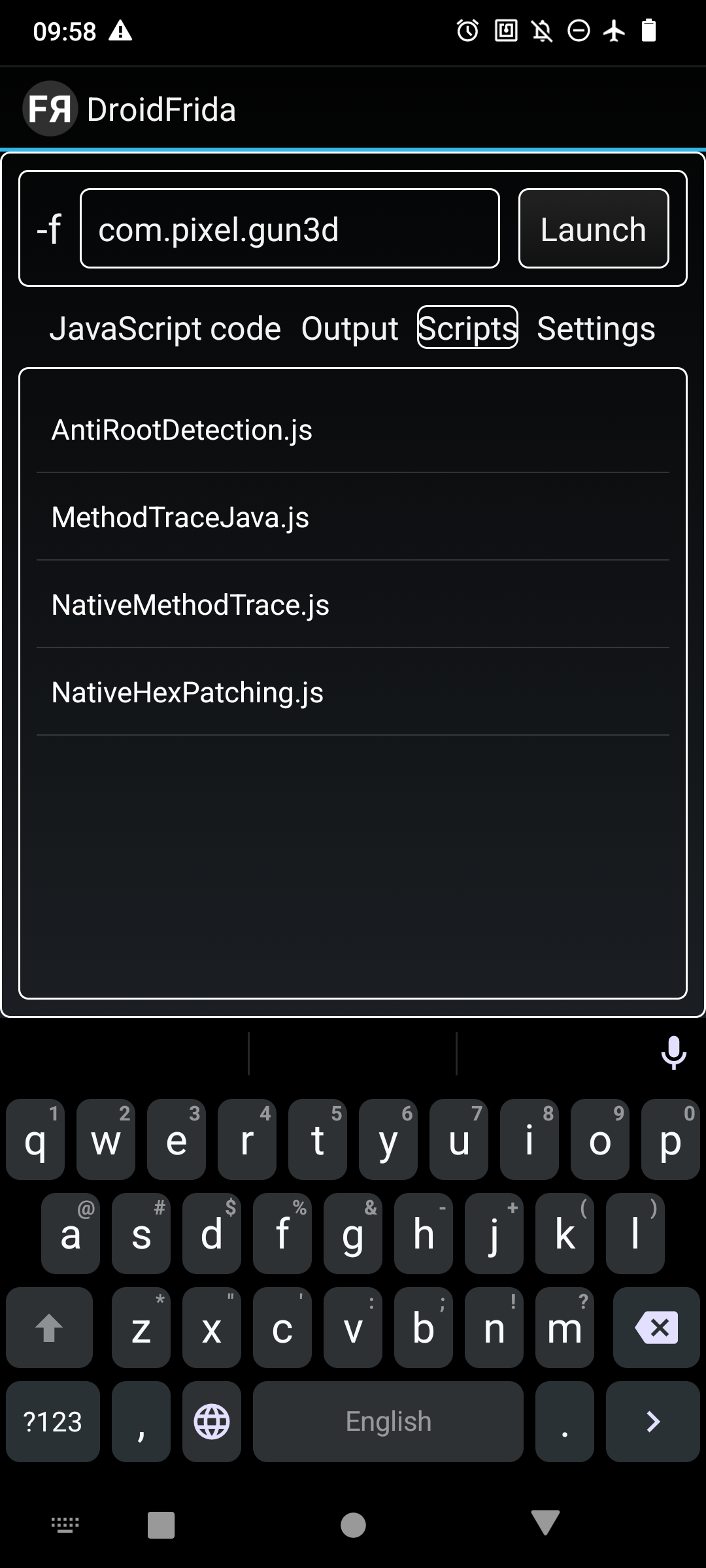 DroidFrida是一个轻便且直观的Android应用程序,专为那些希望在手机上进行即时代码注入和动态应用分析的人设计。通过这个app,你可以轻松地对目标应用执行Frida脚本,无需复杂的命令行操作。