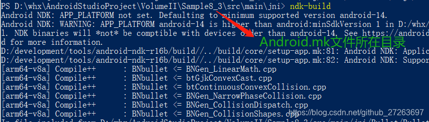 7、打开cmd,使用ndk-build命令,编译so库文件,如下: