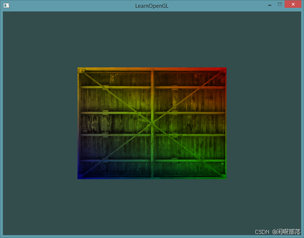 注意,我们使用glUniform1i设置uniform采样器的位置值,或者说纹理单元。通过glUniform1i的设置,我们保证每个uniform采样器对应着正确的纹理单元。你应该能得到下面的结果: