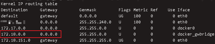 于是ip route 查看本地路由,发现客户端服务器的IP是172.18.X.X,属于docker的docker_gwbridge子网范围,于是并没有走本机的网卡,而是走了docker swarm的网络