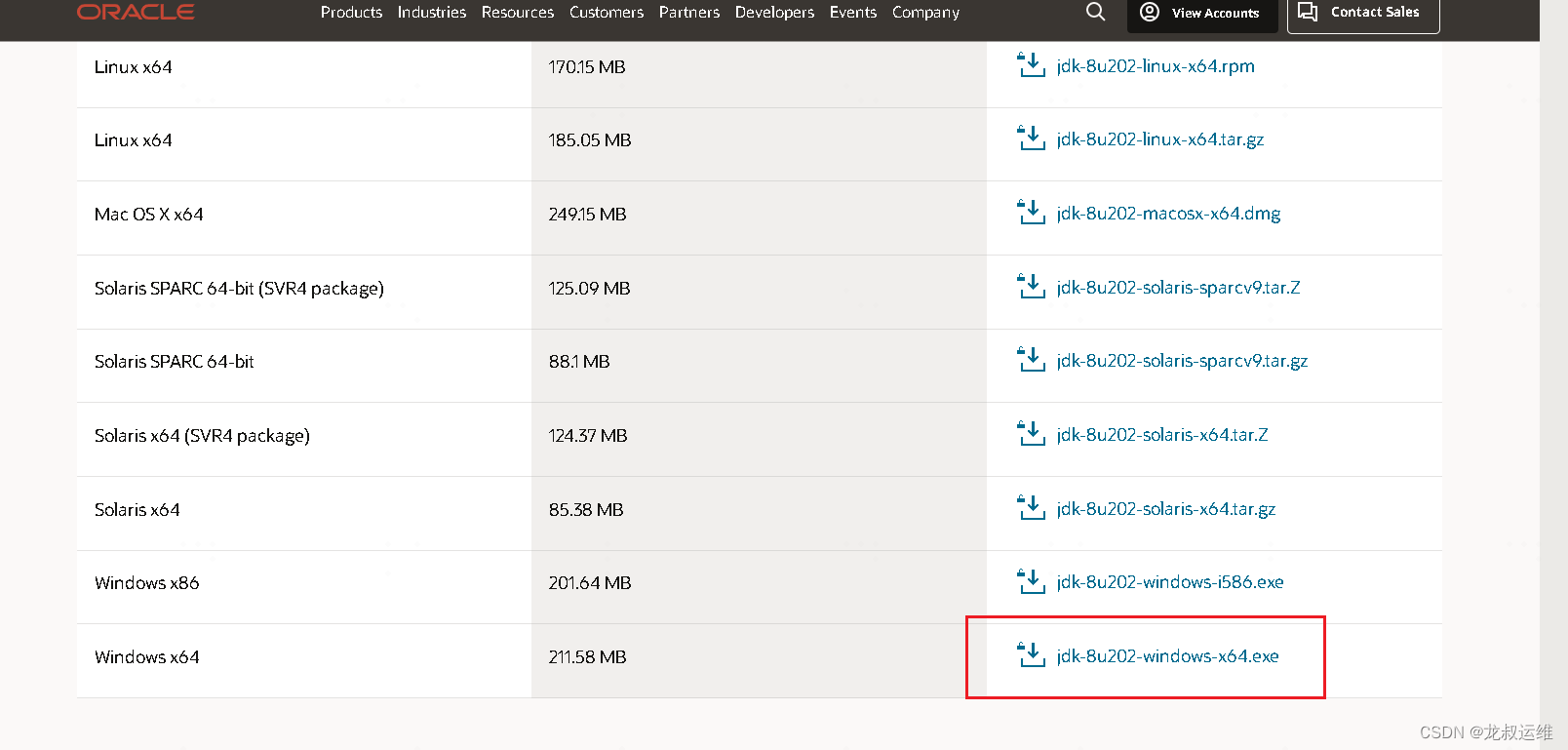 域linux下载的地方一样,不过下载的是windows版本:jdk-8u202-windows-x64.exe