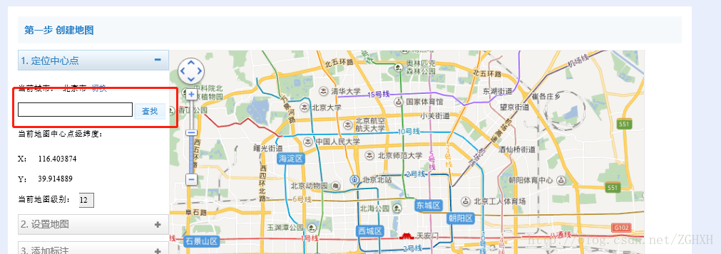 打开后如图所示,在红框处填写自己想要定位的地址,然后将X和Y的数值填入上述代码中