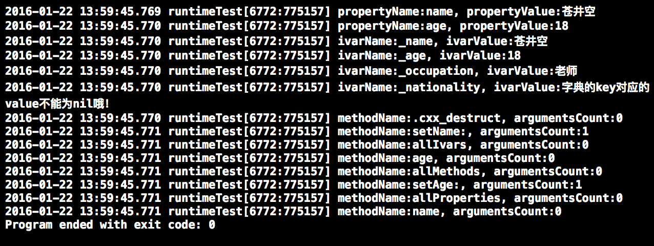 NSLog(@"热烈欢迎,从%@远道而来的%@岁的%@%@",cangTeacher.nationality,cangTeacher.age,cangTeacher.name,cangTeacher.occupation);