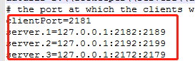 1、首先复制出多个zookeeper启动服务,在dataDir下创建myid文件填入相对序列号,依次修改zoo.cfg中的dataDir