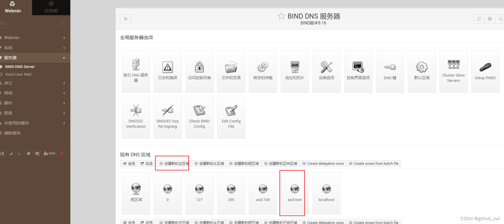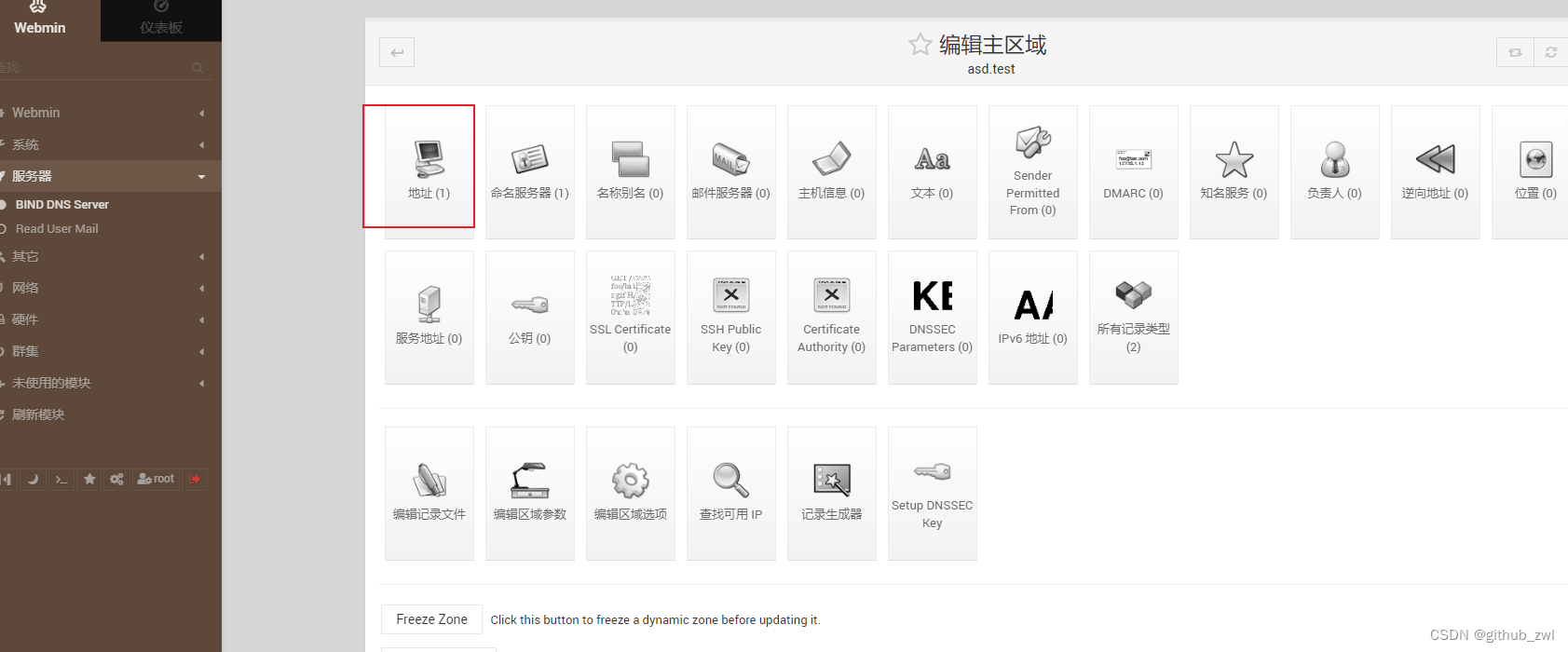 然后登录完成后,可以切换语言和风格,我这里切换了中文,然后创建一个主区域,在主区域中创建一个地址记录,这样就完成搭建了