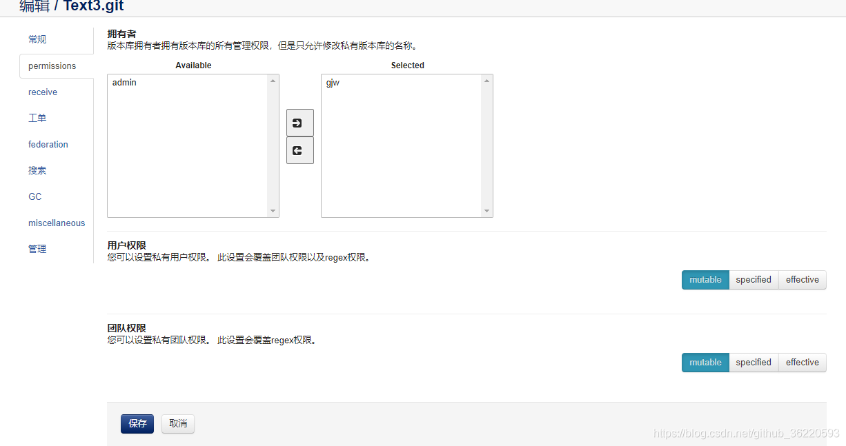 2、为新创建的代码库关联用户,只有关联的用户才能进行代码的拉取和推送,应该是在admin用户创建代码库才对的,本人误操作,在个人gjw用户创建了,不影响接下来的操作