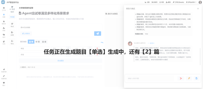 AIP智能体平台的难度适配与精准出题功能,以其丰富的题型选择、精准的难度匹配和显著的教学价值,为教育教学带来了全新的变革。它不仅解决了传统出题方式中的诸多难题,还为分层教学和针对性训练提供了有效的支持,满足了差异化教学的需求。