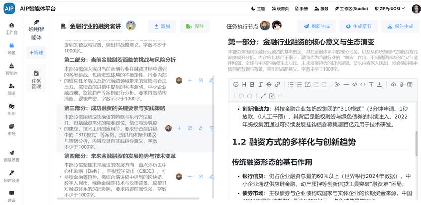 金融行业融资演讲、企业数字化执行方案等内容,不止于完成项目。将融资演讲里的行业趋势分析、关键因素梳理,转化为 “金融领域知识卡片”,在给客户做行业分享、内部培训时,这些沉淀的内容就是权威素材。