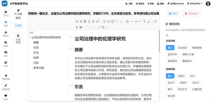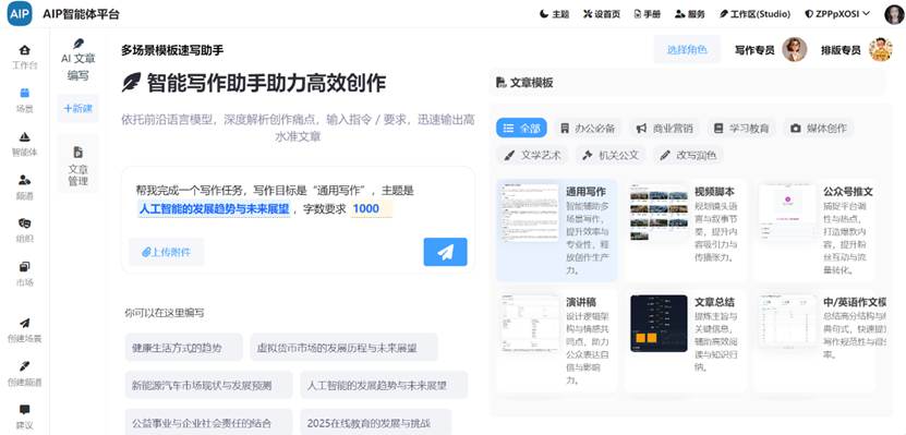 AIP智能体平台的出现,为解决这些写作难题带来了曙光。它就像一位全能的写作助手,深入了解不同场景的写作特点和需求,为用户提供精准的解决方案。