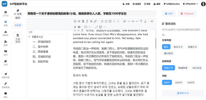 在全球化浪潮席卷的当下,跨语言交流与创作需求与日俱增。无论是商业合作、文化传播,还是个人表达领域,突破语言藩篱、实现顺畅的多语写作至关重要。AIP智能体应时代之需而生,以强大的多语翻译能力为核心,开启多语写作新纪元,助力创作跨越国界。