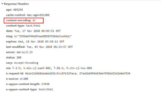 其实支持 Brotli 的浏览器会在接受编码请求标头中发送“ br”和“ gzip”(例如:Accept-Encoding: gzip, deflate, br)。如果 Web 服务器上启用了 Brotli,则用户将获取到 Brotli 压缩格式的响应。