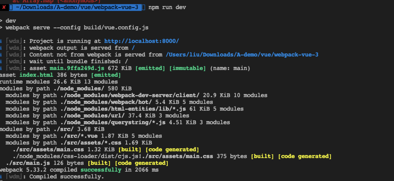 package.json:“dev”:“webpack serve --config build/vue.config.js”
