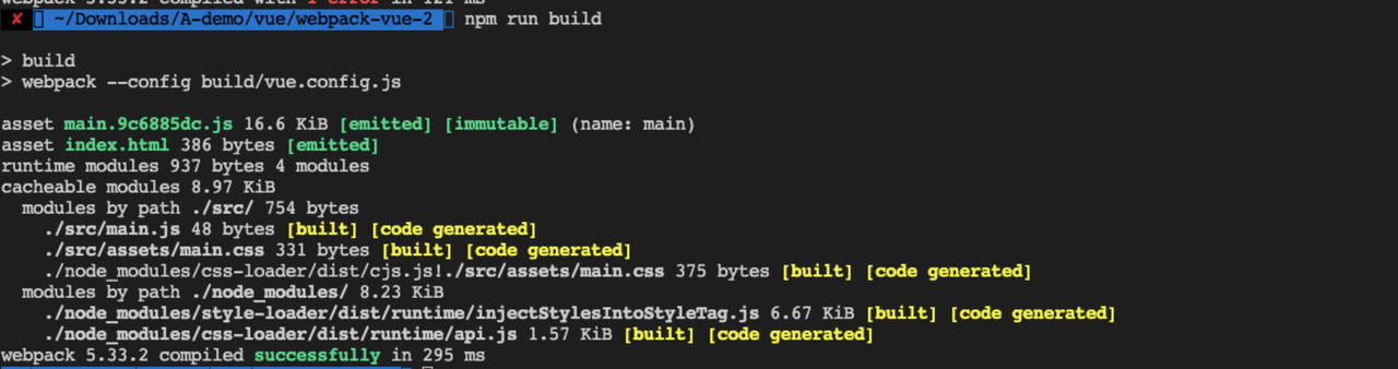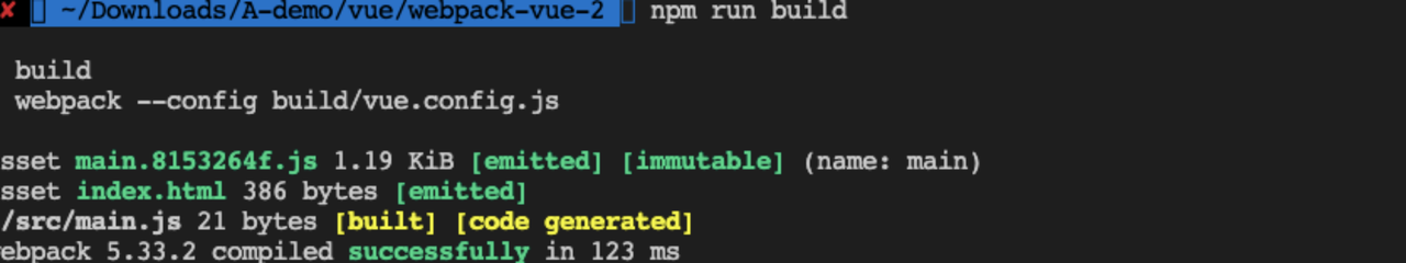 新建 src/main.js,里面随便写点 console.log(‘hello,webpack-vue’)