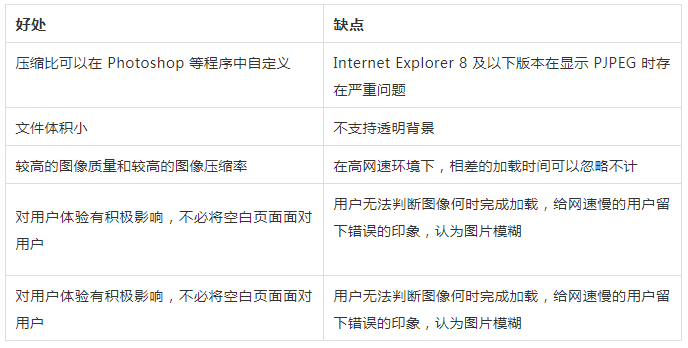 当然我们一直都在强调没有什么是完美的,PJPEG 也有不足,来详细看一下它的优缺点: