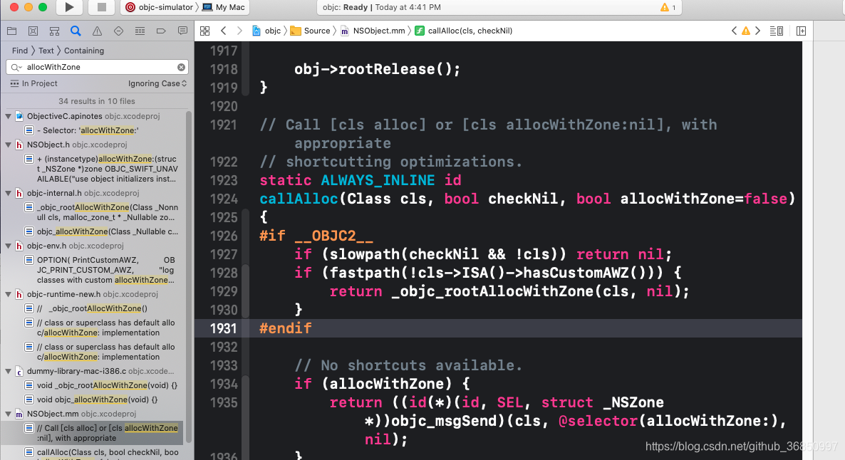 打开下载的工程文件 搜索allocWithZone(alloc本质调用的还是这个方法)