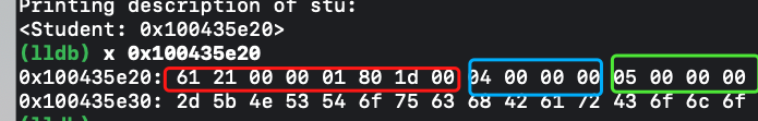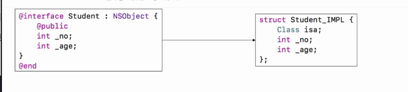 一个 Student 类,继承自NSObject,有两个属性,首先要知道,int 类型占用的字节是4个字节