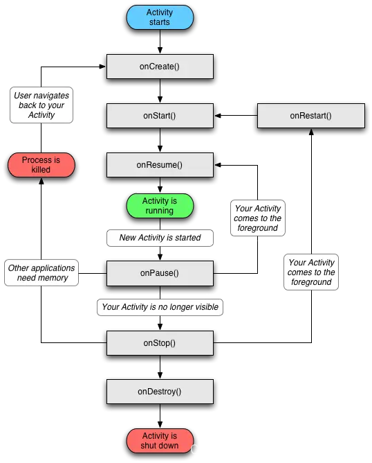 1> 在Activity 运行之前,会调用onCreate,onStart,onResume 这三个方法,之后Activity 就处于Running 状态了