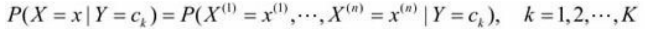 朴素贝叶斯必须要有的先决假设:特征条件独立,意思就是 X这个特征向量中的x1,x2,x3.。。。等,相互之间都是条件独立的。