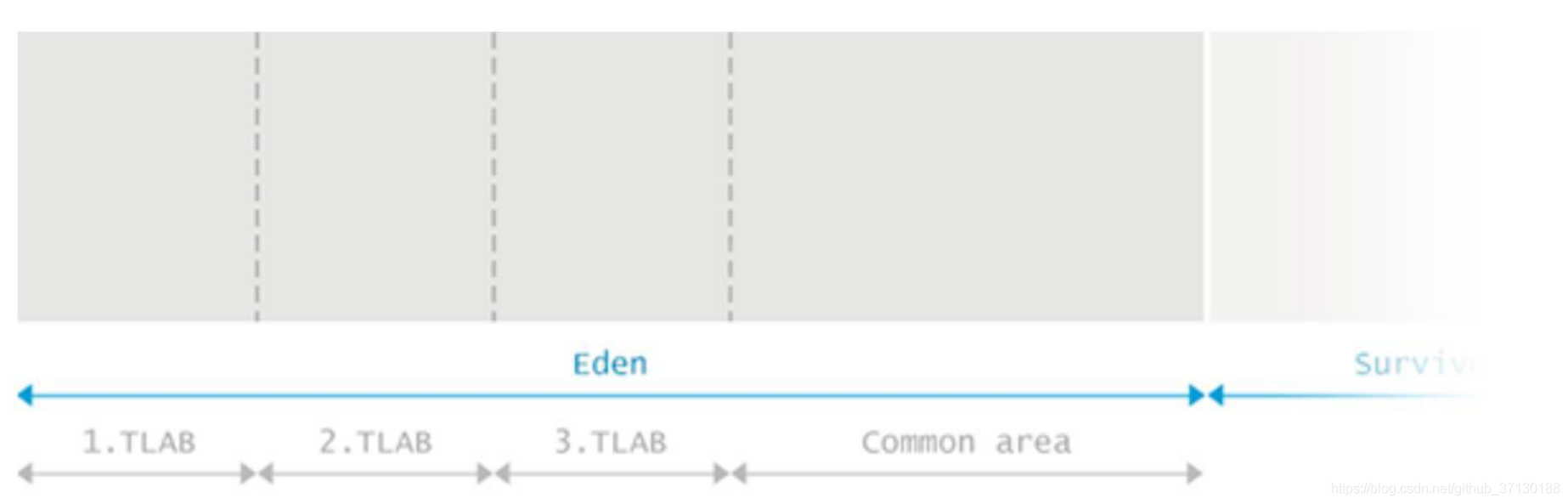 通过这种缓冲区划分,大部分对象直接由JVM在对应线程的TLAB中分配,避免与其他线程的同步操作。
