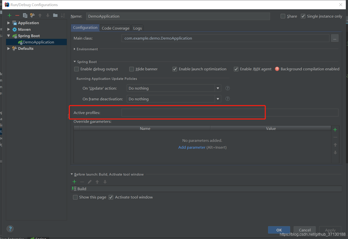 最后在Spring项目中的Active profiles输入框中输入你想要配置的文件,比如我想用application-local.properties配置文件,只需要输入local。我想用application-test.properties配置文件,输入test。最后点击ok按键即可