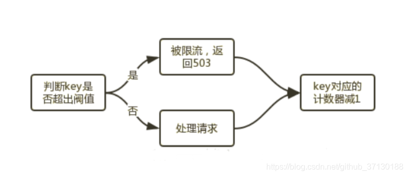 请求进入后首先判断上一次请求时间相对于当前时间是否需要限流,如果需要则执行步骤2,否则执行步骤3.