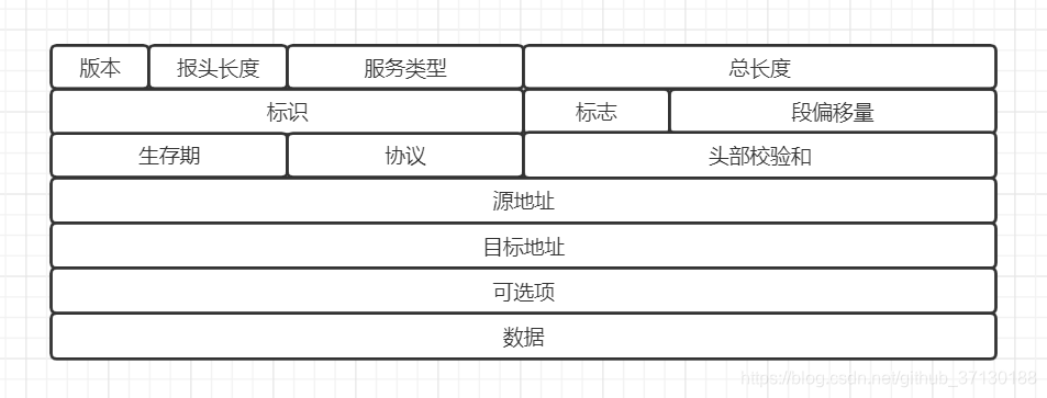 - 段偏移字段:占13比特。如果一份数据报要求分段的话,此字段指明该段偏移距原始数据报开始的位置。