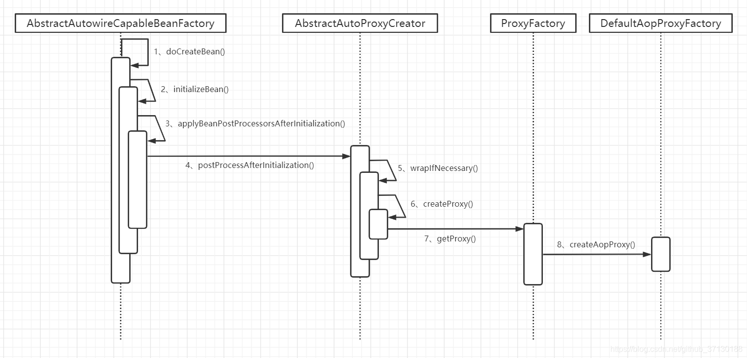 (1)创建代理Bean:applyBeanPostProcessorsAfterInitialization中会检查下该类是否已经暴露过了(可能已经创建了,⽐如A依赖B时,创建A时候,就会先去创建B。当真正需要创建B时,就没必要再代理⼀次已经代理过的对象),避免重复创建。