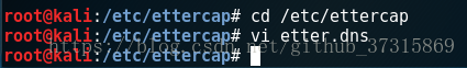 我们使用的欺骗工具是ettercap,首先对dns的文件进行编辑,通过终端打开