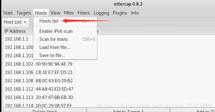 接下来在Mitm(中间人攻击)中选择ARP poisoning(arp欺骗)