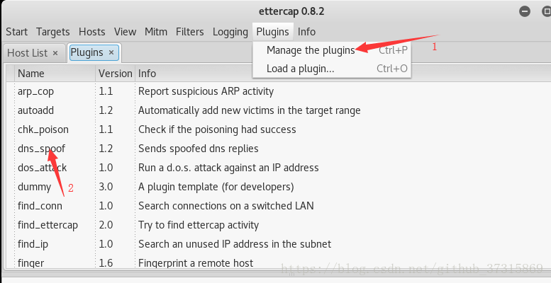 然后选择脚本dns_spoof,双击,然后前面会出现一个*号