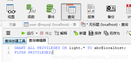 abc是用户名, localhost 是 ip , light 是表名 , 给 abc 这个用户添加一个 light 表权限