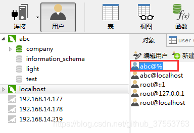 例如给 abc@% 这个用户添加权限 , 右键这个用户, 选择编辑用户