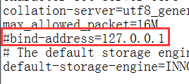 4.如果本地连接, 外网不能连接, 还要确认下 mysql 是否绑定了 IP 或者绑定到了本地 127.0.0.1 , 要取消 (即第一步中的第四步)