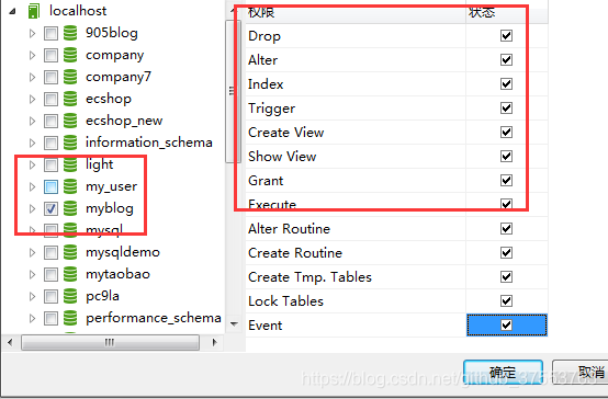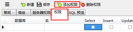 2. 新建一个用户, 连接到 localhost 数据库, 可以通过手动添加的方式来给新建用户添加权限, 也可以通过命令行 来给新建用户添加权限