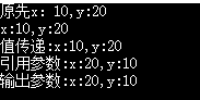 Console.WriteLine("原先x:{0},y:{1}", x1, y1);